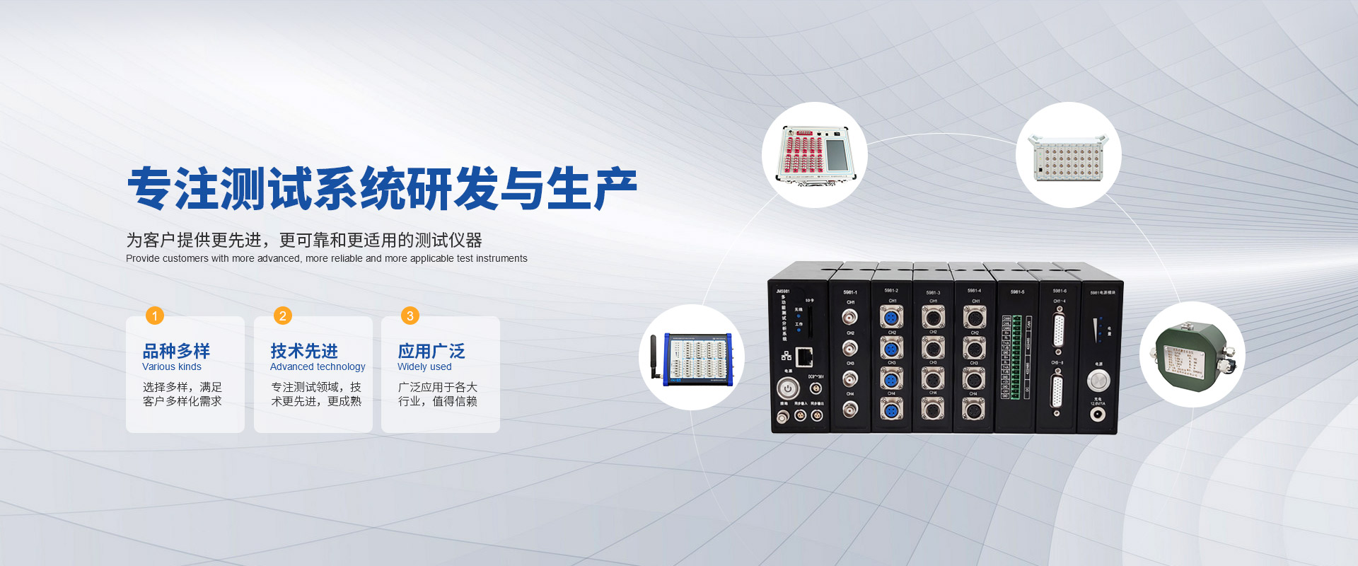 我們的無(wú)線(xiàn)遙測(cè)系列、應(yīng)變儀、放大器、數(shù)據(jù)采集分析系統(tǒng)等產(chǎn)品已得到廣泛應(yīng)用和客戶(hù)的一致好評(píng)
